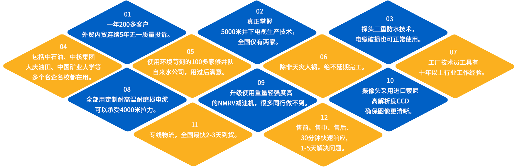 朋友本身就是行業(yè)內(nèi)的,對井下電視行業(yè)亂象深惡痛絕,也知道客戶對假冒偽劣,以次充好設備的咬牙切齒,現(xiàn)在我們自己開公司,做事必 須對得起自己的良知,真心真意做產(chǎn)品。精心選材,規(guī)范工藝流程,創(chuàng) 新三重防 水技 術等。